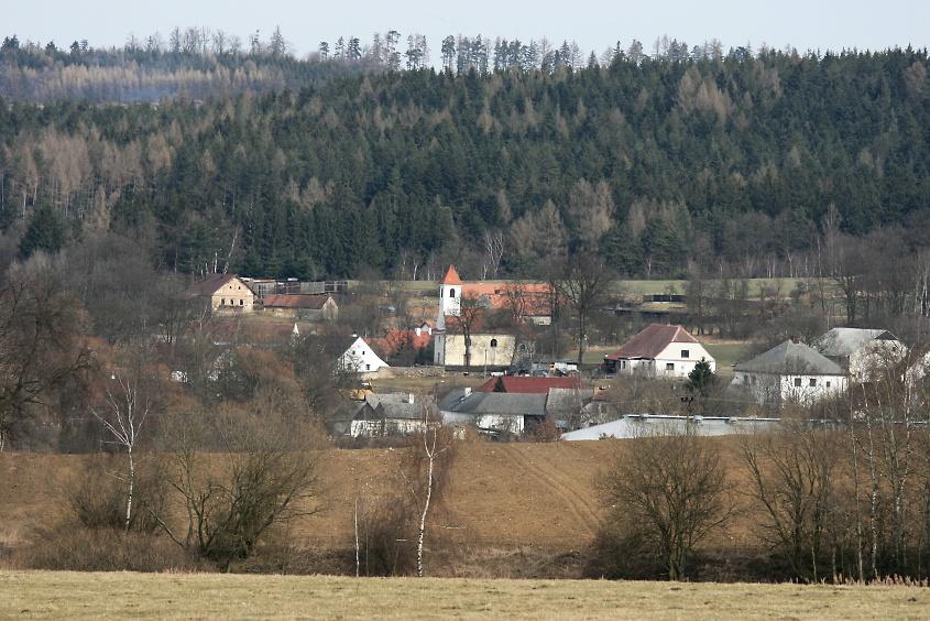 Nedaleko kaple stojí část bývalé renesanční tvrze, později upravené na školu a po jejím zrušení na obytný dům. Pod návsí se u silnice Klatovy - Nepomuk nachází barokní pískovcová plastika sv. Jana Nepomuckého s datací 1713.