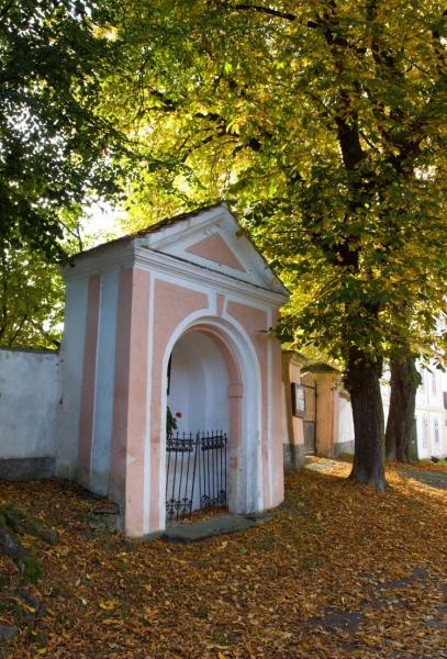 Měčín výklenková kaple při ohradní zdi kostela